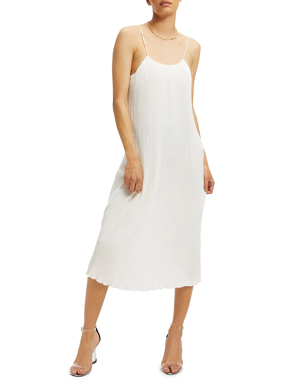 Crafted of flowing plissé, this GOOD AMERICAN slip dress is designed in a strappy style at a midi-length.